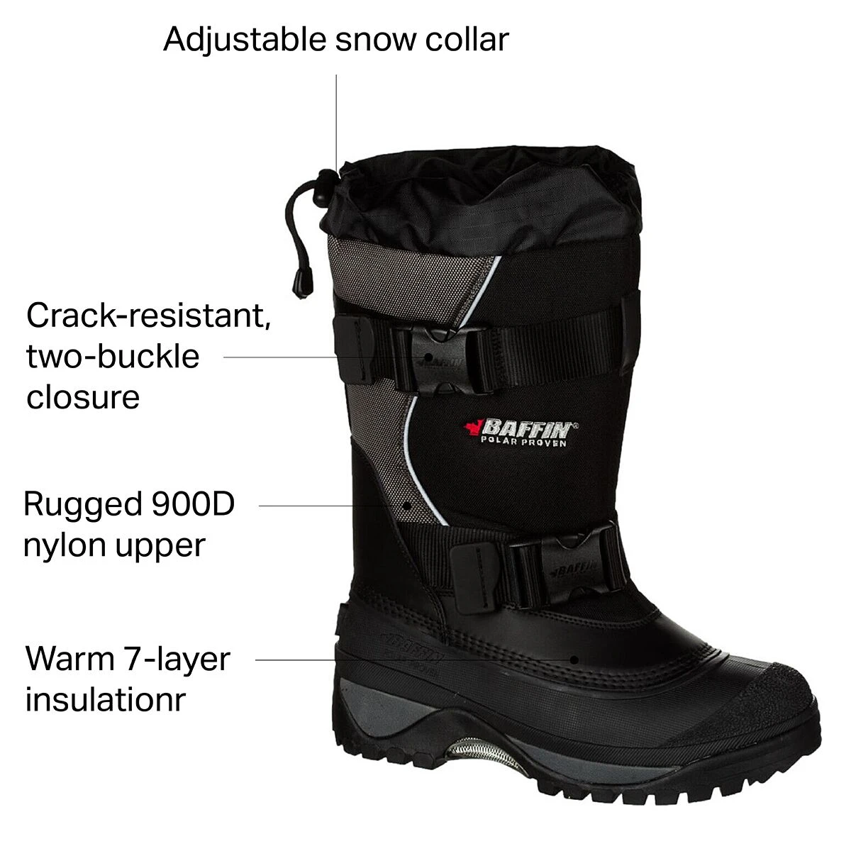 We trust the Baffin Wolf Winter Boot for winter duties and recreation thanks to their workwear-inspired design that’s ready for plummeting temperatures. With a seven-layer inner boot insulation system that traps heat and a thick, protective sole, this boot is great for snowshoeing, fishing, snowmobiling.