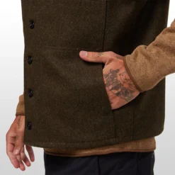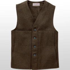 Ideal for layering under a coat or over a shirt, the Filson Men’s Wool Mackinaw Vest gives you a simple, classic look when venture out for some grub or head to the neighbor’s ranch for poker night. Made with 100% virgin Mackinaw wool, the Wool Mackinaw offers incredible warmth and naturally resists odor for stellar all-day comfort. A five-button front closure offers a comfortable fit while two lower hand-warmer pockets and two upper open pockets with slotted left chest pocket help keep you organized.
