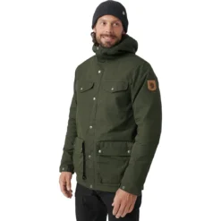 Zip up the Fjallraven Jacket for a day full of much-needed outdoor work. Whether fixing up the snowmobile, chopping wood, or taking the dogs for a walk, the durable and comfortable G-1000 fabric and super warm Supreme Microloft insulation keep us toasty and warm. When the going gets tough, the reinforced shoulders and elbows keep us working without a snag.