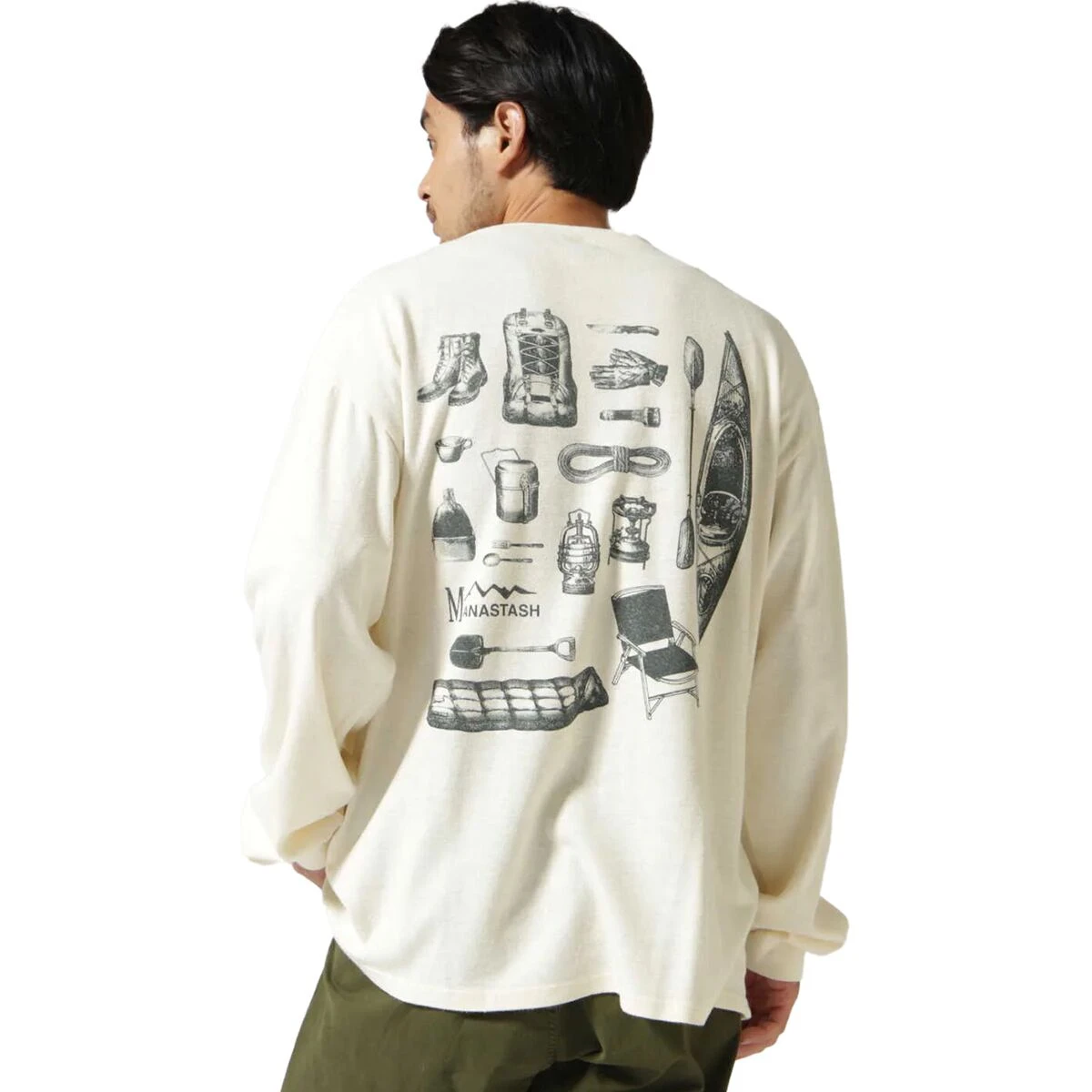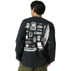 - Vintage camping essentials printed on long-sleeve t-shirt
