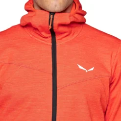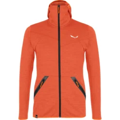 A mens hybrid fleece hooded jacket in thermoregulating and moisture-absorbing AlpineWool.